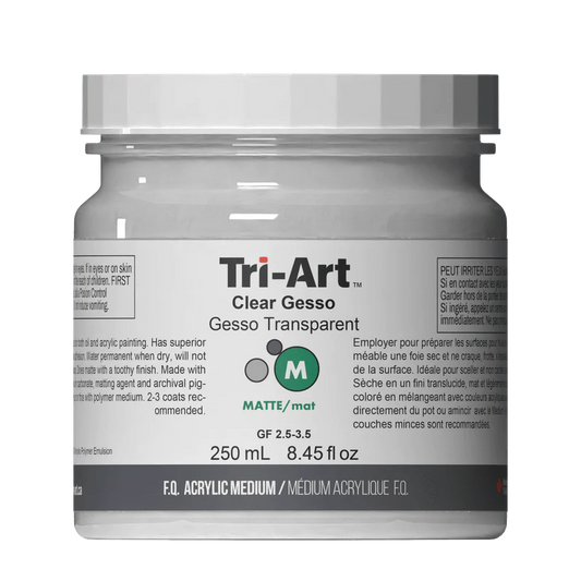 Made with the environment in mind. Re-harvested particles from other manufacturing processes are used to create beautiful textural mediums. Each medium contains particles combined with a professional-grade gel medium to ensure excellent adhesion, flexibility, and clarity once dry. The mediums will appear lighter at first, but they dry clear with a gloss finish. Tint the mediums with color prior to applying them to your surface, or use the mediums as a ground and apply color over the dried medium.
