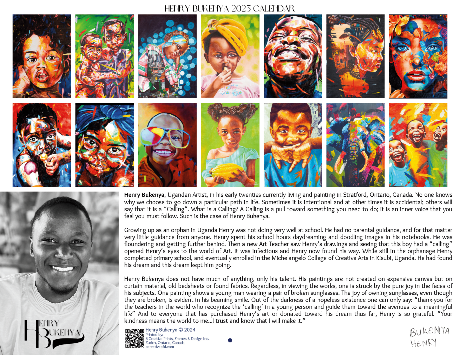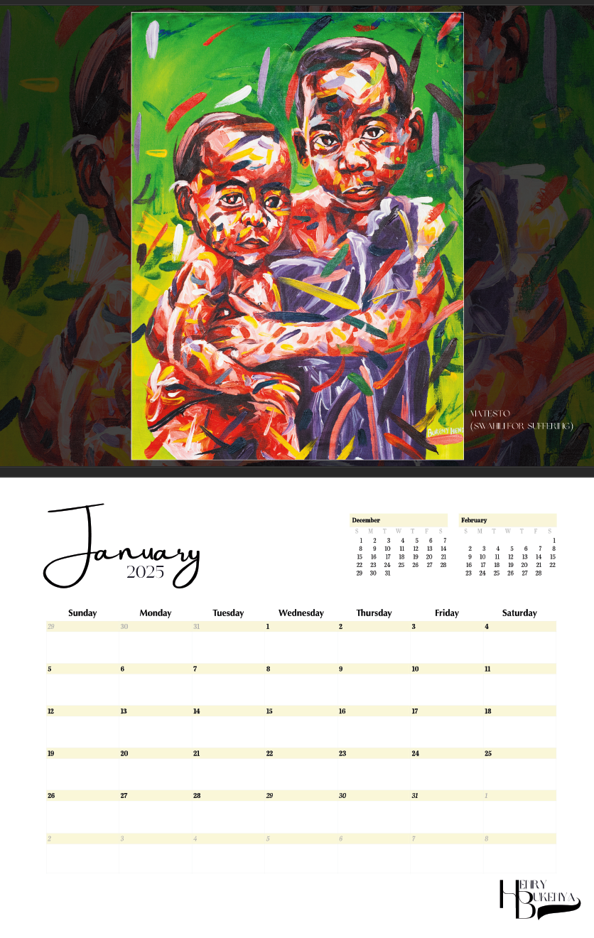 2025 14 Month Calendar (December 2024 to January 2026). Showcasing artwork from Henry Bukenya.